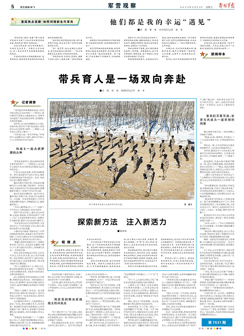 “带兵育人是一场双向奔赴。”仲春时节,记者踏访这个连队,倾听他们齐心合力、并肩前行的奋斗故事。