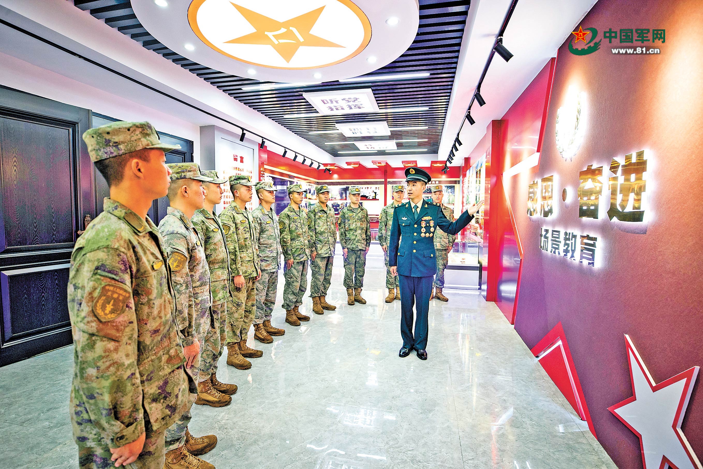 火箭军某部延期服役军士为官兵开展场景教育。芷馨 摄