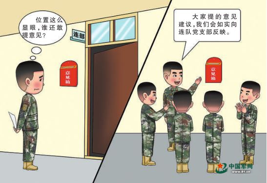 一名战士向陈练道出原因:“把意见箱设在这么显眼的位置,谁还敢提意见?”