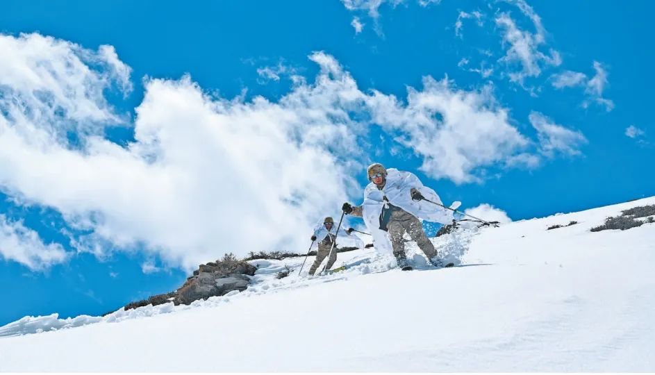西藏军区某部官兵进行高海拔滑雪训练。杨 凯摄