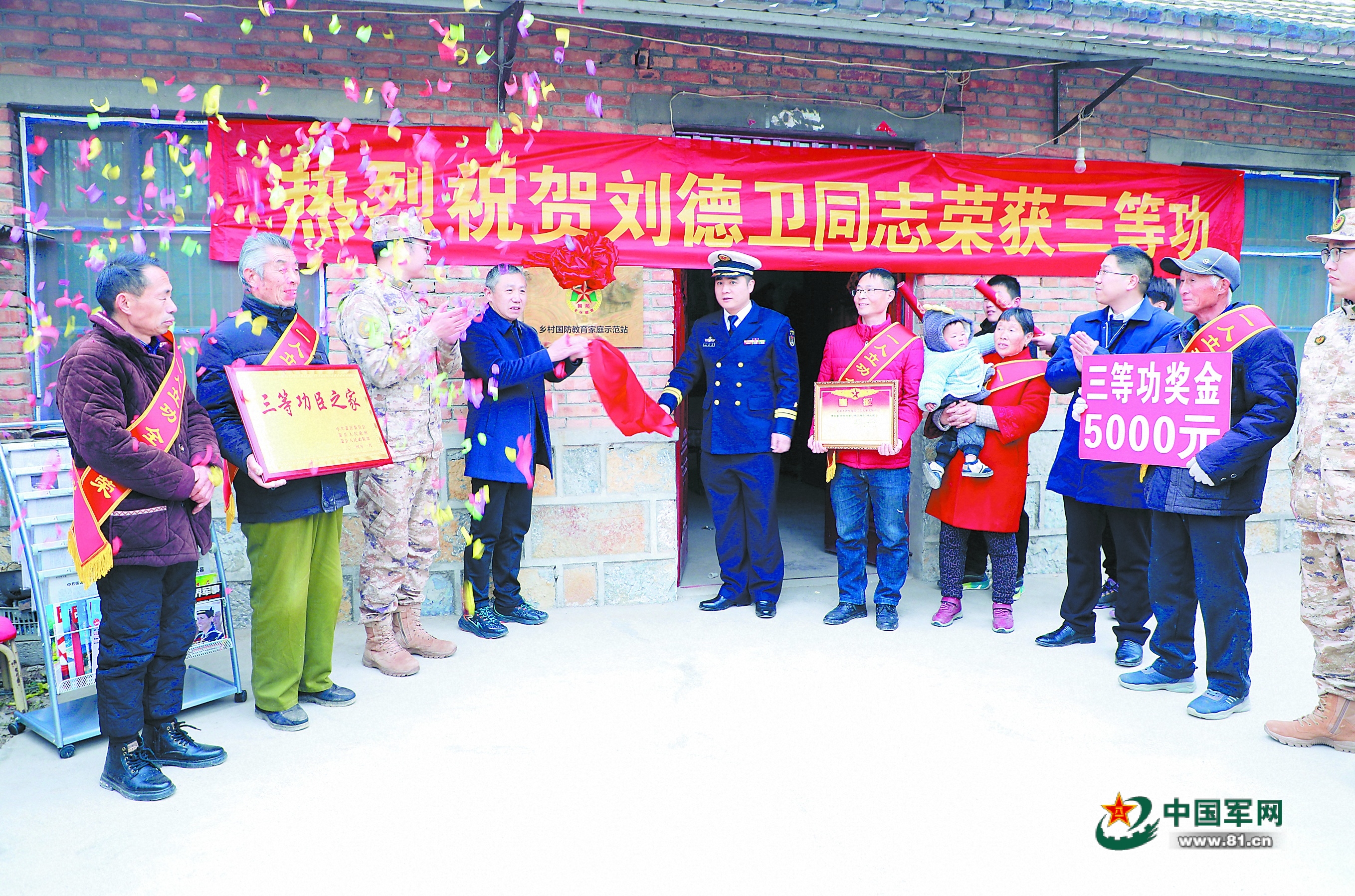 3月下旬,安徽省萧县军地为立功军人刘德卫家庭送喜报、挂“乡村国防教育家庭示范站”牌匾。段艳梅摄