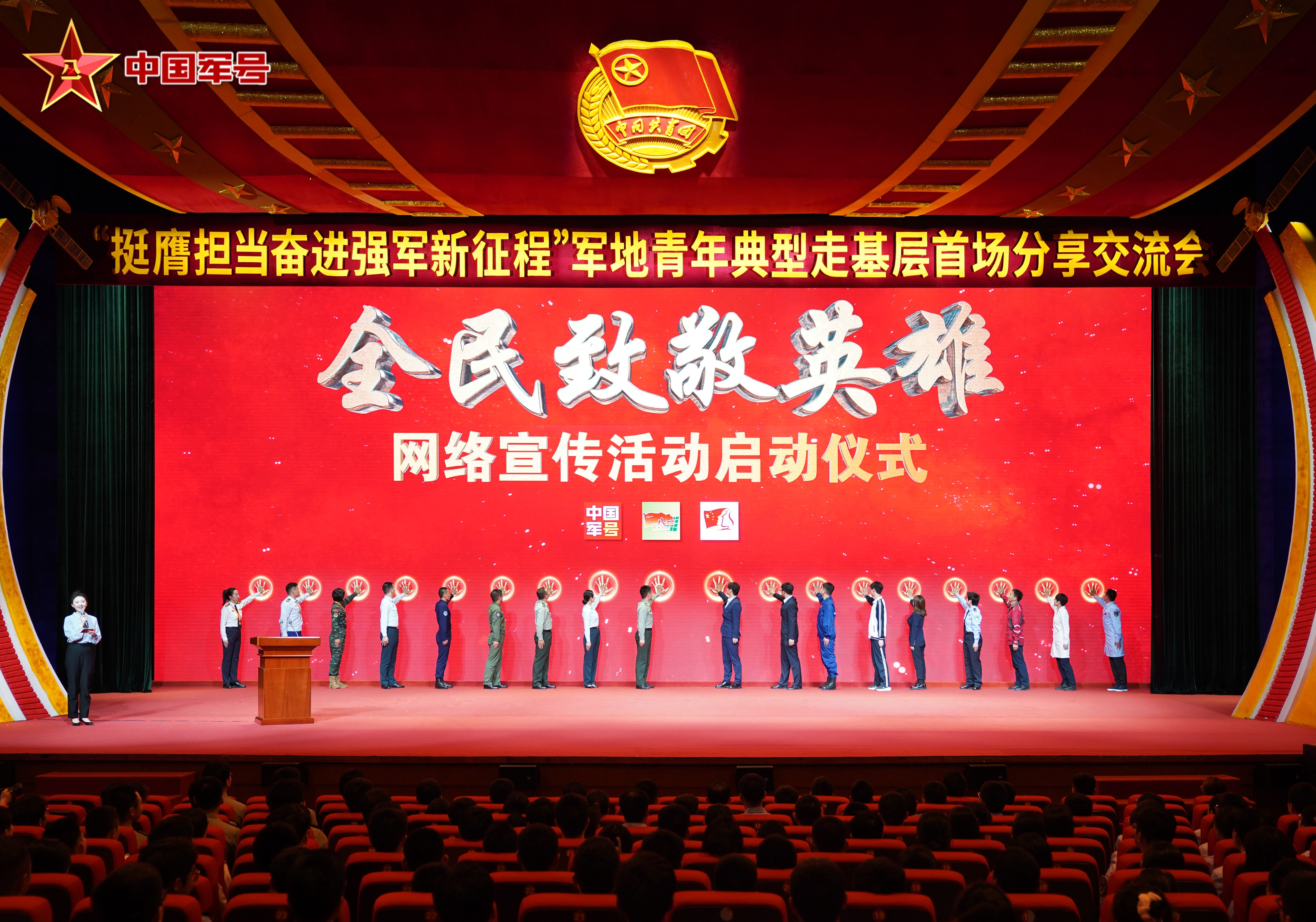 “全民致敬英雄”网络宣传活动启动仪式,18名各界青年代表共同按下按钮。陈新阳 摄