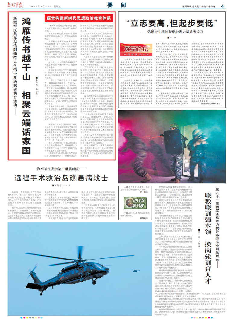 大学生们的来信,不仅打动了戍边官兵的心,也让该部领导找到了深化思想政治教育的契机。他们与信阳师范大学联系后商定,携手开展联建共育活动。经过周密部署,在严格遵守安全保密规定的前提下,该部官兵与青年学子进行了一场“云端对话”。