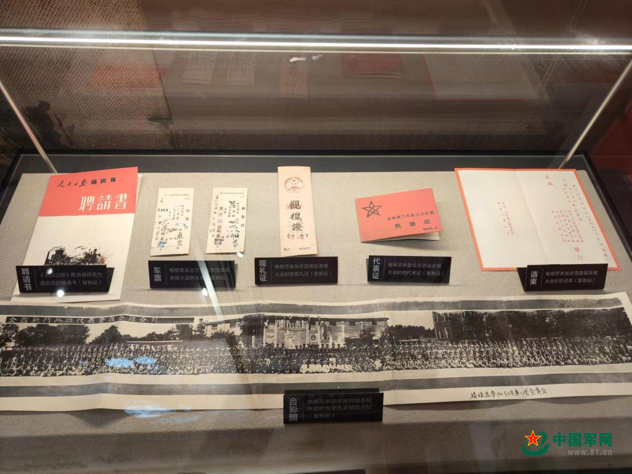 杨根思参加全国首届英模大会时的各种文件。中国军网记者张诗梦 摄
