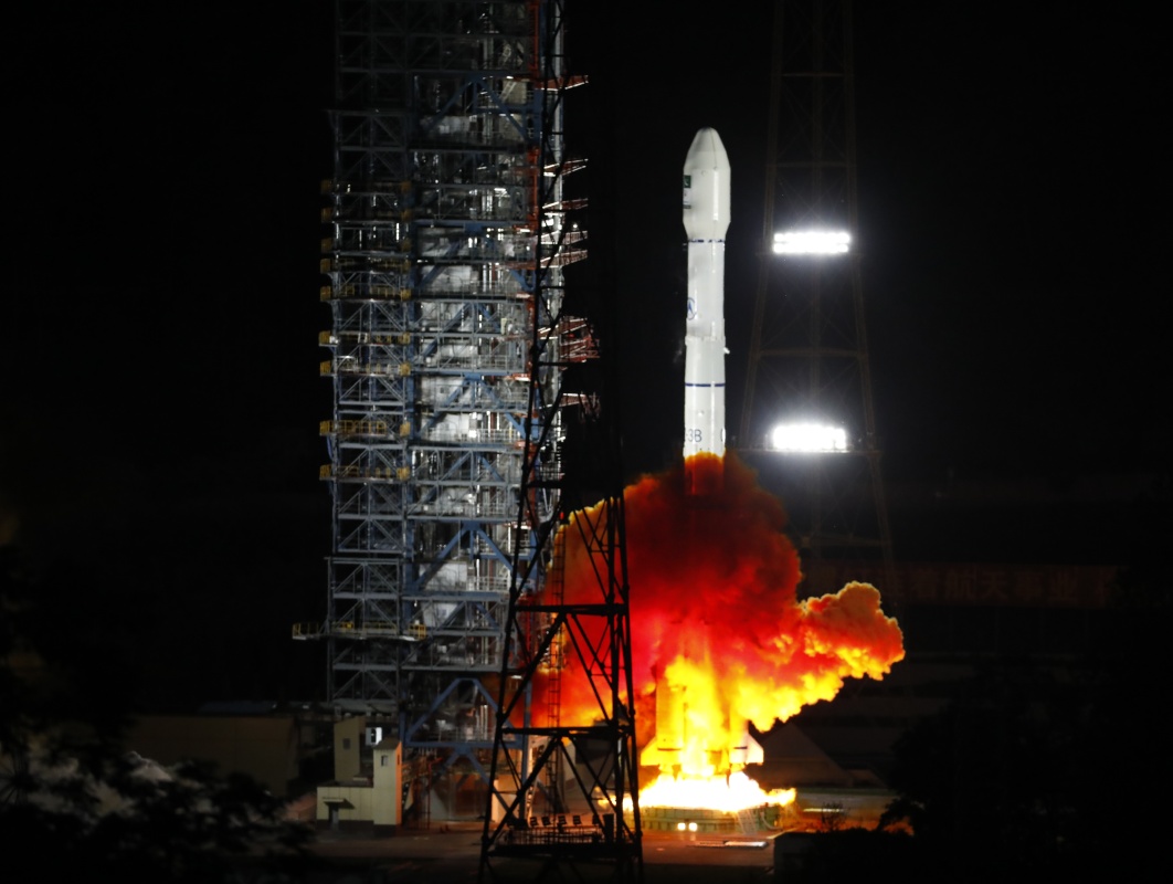 5月30日20时12分,我国在西昌卫星发射中心使用长征三号乙运载火箭,成功将巴基斯坦多任务通信卫星发射升空,卫星顺利进入预定轨道,发射任务获得圆满成功。新华社发(刘亚男 摄)