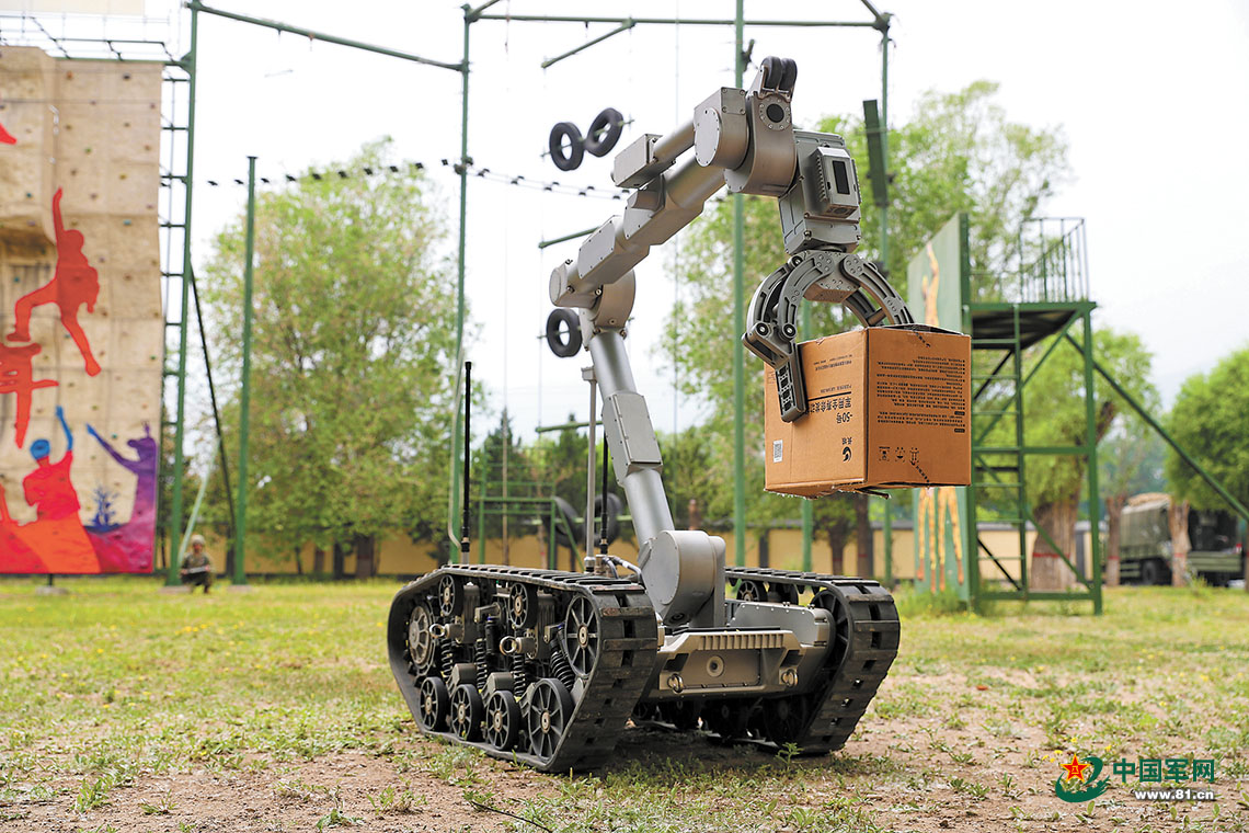 排爆机器人转移爆炸物。