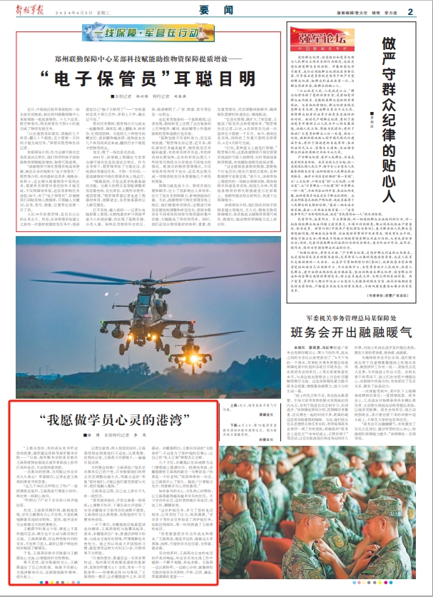 “这次护航任务,多亏了您的电话指导,让我顶住了压力,收获满满。”学员李子考毕业后参加亚丁湾护航任务,返航回到部队,第一时间拨通了王海燕的电话。