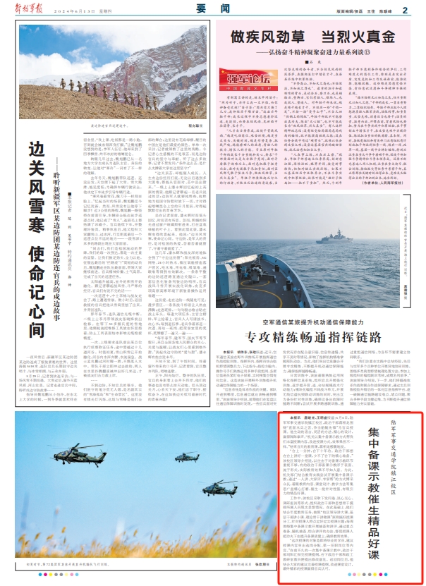 解放军报讯 唐继光、王明盛报道:6月6日,陆军军事交通学院镇江校区,政治干部蒋相龙围绕“直面水兵之苦、争当船艇先锋”为官兵授课。他生动的语言、灵活的方法、精心的设计,赢得阵阵掌声。“机关以集中备课示教方式帮我们丰富授课内容、改进授课方式,效果果然不一样。”结束当天的教育课,蒋相龙感慨地说。