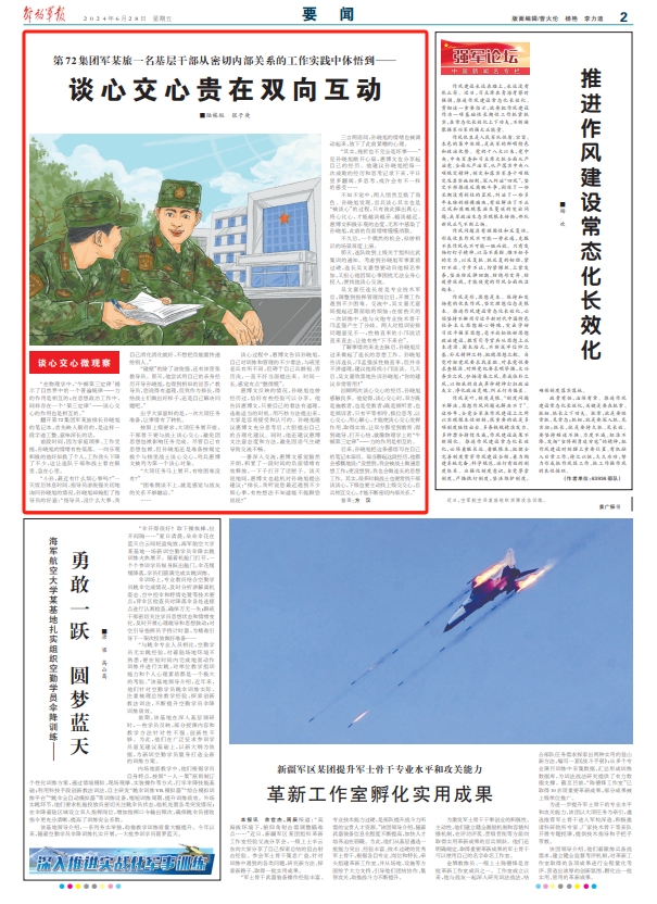 第72集团军某旅一名基层干部从密切内部关系的工作实践中体悟到——