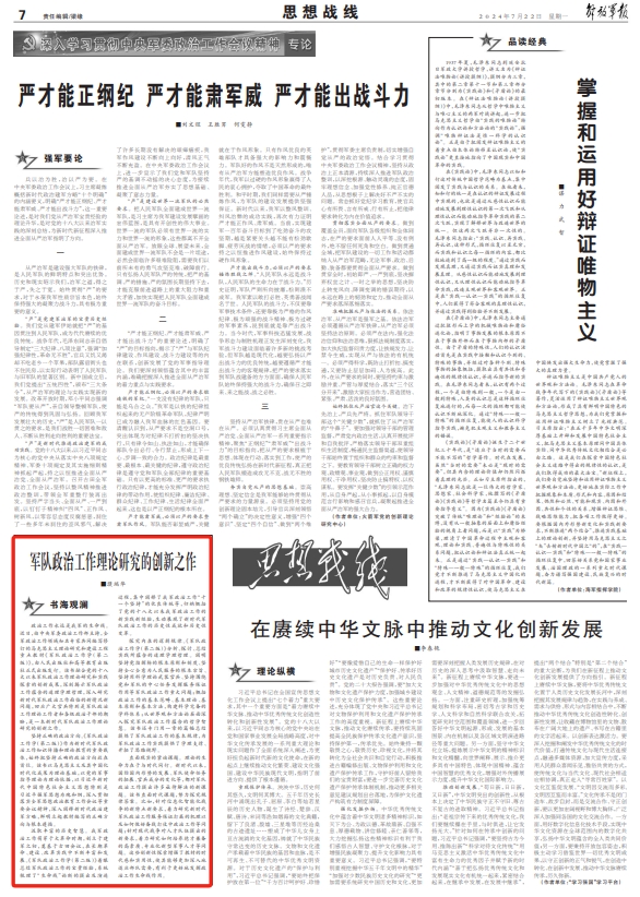 汲取丰富的历史智慧。我军政治工作萌芽于大革命时期,创立于建军之初,奠基于古田会议,在长期革命、建设、改革实践中不断丰富和发展。《军队政治工作学(第二版)》着眼总结军队政治工作的宝贵经验,系统梳理了“生命线”论断的提出及演进过程,集中阐释了我军政治工作“十一个坚持”的优良传统等,归纳概括了党的十八大以来我军政治工作的新实践新经验,生动展现了新时代军队政治工作的历史性成就和历史性变革。