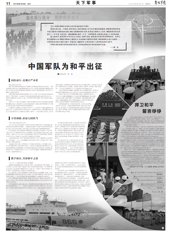 “用生命践行使命,以实干捍卫和平”“我们为和平、合作、友谊而来”“请祖国人民放心,我们一定不辱使命”……八一建军节来临之际,护航编队、维和分队、驻吉布提保障基地等我军海外任务部队,组织开展形式多样的主题活动,庆祝中国人民解放军建军97周年。