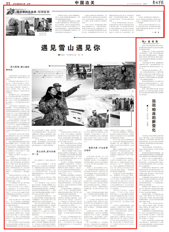 那一刻,邢雨晴心中,一种自豪感油然而生。望着远方的乃钦康桑峰,她在心里轻声说:“你保卫祖国,我培育祖国的花朵,我们一起奋斗、一起追梦。”