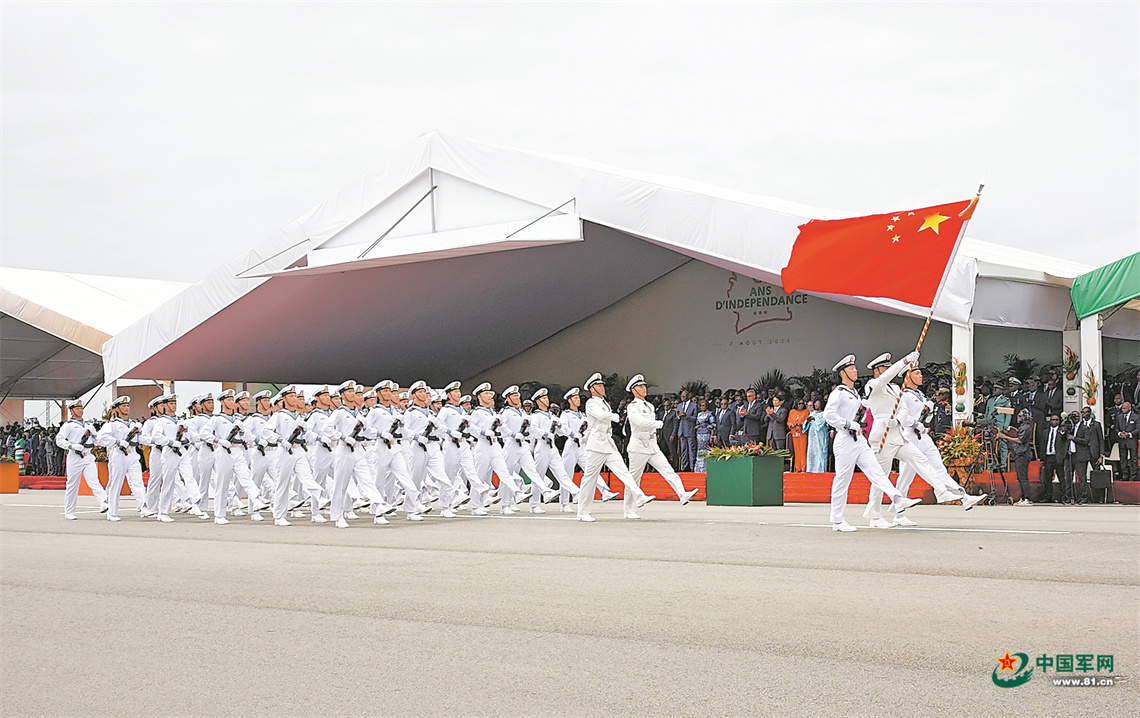 8月7日,中方受阅方队在科特迪瓦独立64周年阅兵典礼上精彩亮相。作者提供