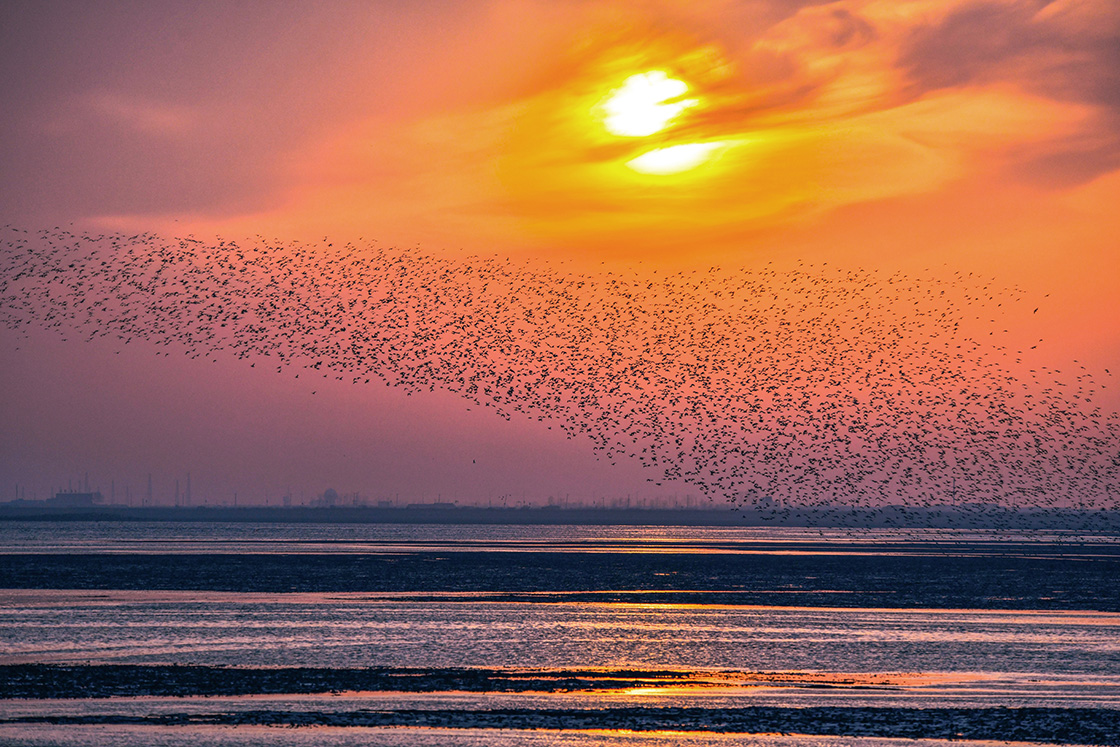 还记得是1999年4月的一天,我偶然来到鸭绿江口湿地,被眼前的美景深深震撼:成千上万的鸻鹬随着潮汐起伏翩翩起舞,在空中形成一波又一波造型各异的鸟浪,仿佛一场壮观且协调的空中芭蕾。从那时起,我就决心做好湿地候鸟的守护者。