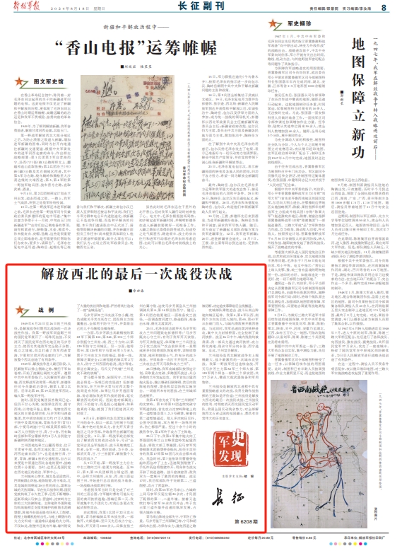1949年8月21日至26日的兰州战役,是解放战争时期西北战场的一次决战性作战。我第一野战军同盘踞兰州的国民党军展开了一场殊死血战,不仅消灭了国民党军在西北地区的马步芳主力,使西北其他敌军完全陷于分散、孤立之境地,而且打通了我军西进青海、宁夏和甘肃河西走廊的门户,为解放整个西北创造了有利条件。