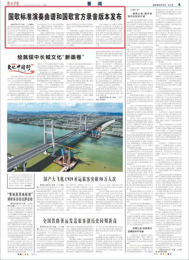 解放军报北京9月1日电 记者潘娣报道:国歌标准演奏曲谱和国歌官方录音版本1日正式发布。记者从国务院新闻办公室当日举行的新闻发布会上获悉,此次发布了三个版本演奏曲谱和四个版本官方录音,能够涵盖国歌使用的主要奏唱形式和使用场景,将更有利于国歌奏唱的严肃性和规范性,有利于党和国家的礼仪制度、礼乐制度的建设,更好维护国家尊严。