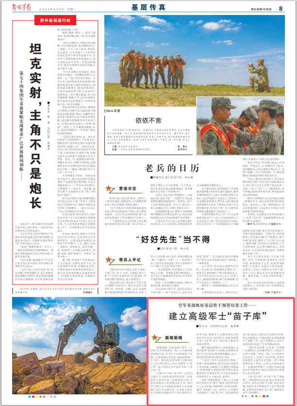该部“英雄侦察连”二级上士王肖明两次参加空军“猎人”集训,两次参加军以上比武竞赛,均取得前3名的好成绩,履历“含战量”十足。前不久,王肖明作为侦察骨干入选“苗子库”,连队按照培养计划,指导王肖明先后完成学历升级、职业技能鉴定,为他在部队长期发展铺平了道路。“我一定不负期望,以实际行动回报组织培养。”王肖明激动地说。
