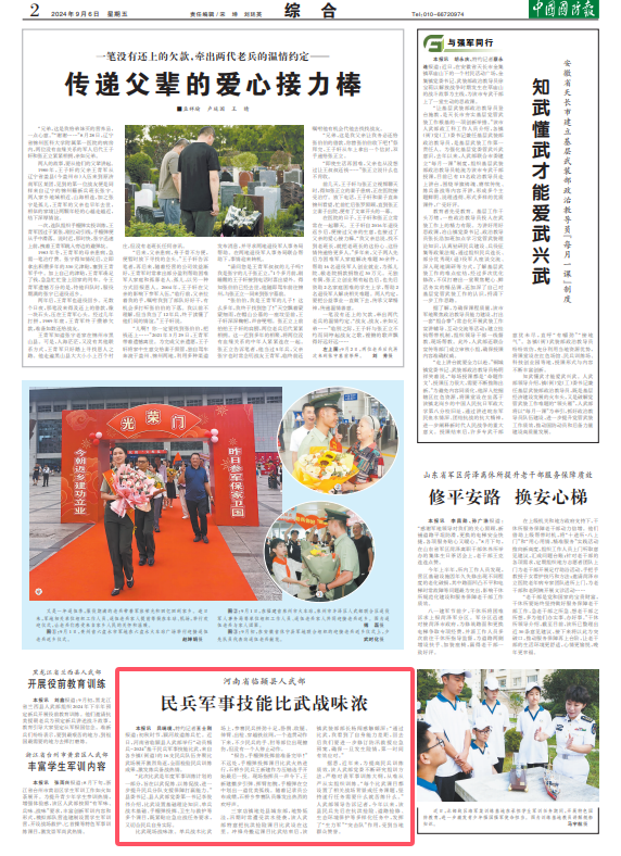 据悉,近年来,为提高民兵训练质效,该人武部党委不断研究组训方法,严格对表军事训练大纲,从难从严从实组织训练。“每个比武课目都设置了相关战场背景或任务课题,坚持遂行任务需要什么就苦练什么。”人武部领导告诉记者,今年以来,该县民兵先后在抗洪抢险、道路抢修、生态环境保护等多样化任务中,发挥了“生力军”“突击队”作用,受到当地群众赞誉。