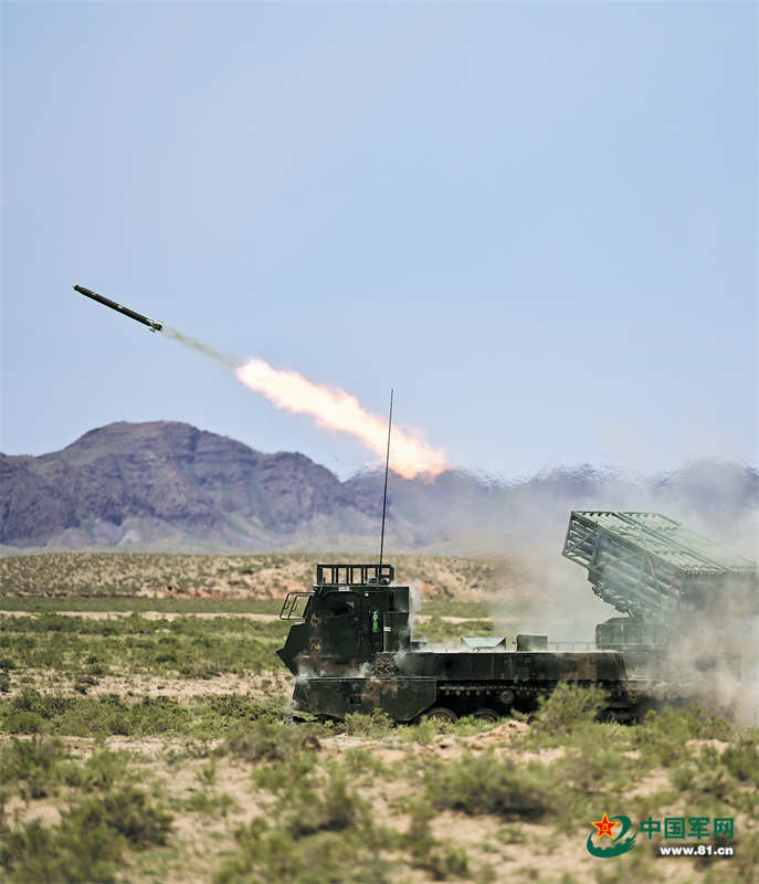 指挥车内,荧屏闪烁,数据奔流,一道道指令通过指挥信息系统传至各火力单元。“预备,放!”射击指令传来,火箭弹拖着烈焰破膛而出,直扑目标。