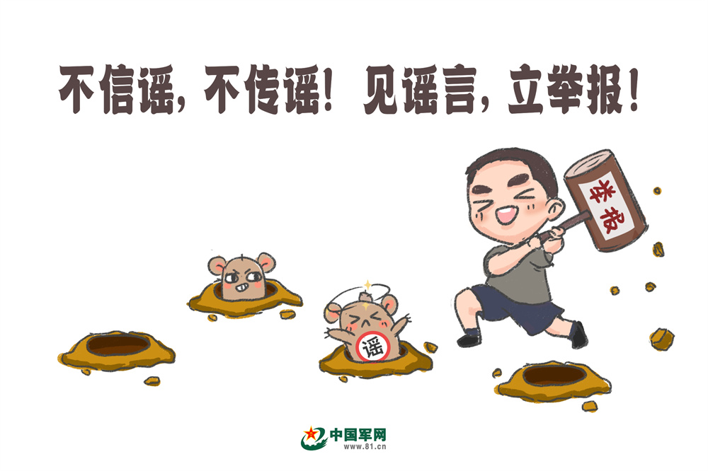 网上不时有不法分子编造传播涉军谣言,诱导官兵主动暴露军人身份。战友们要提高鉴别力,莫被“带节奏”,做到“不信谣、不传谣,见谣言、立举报”。