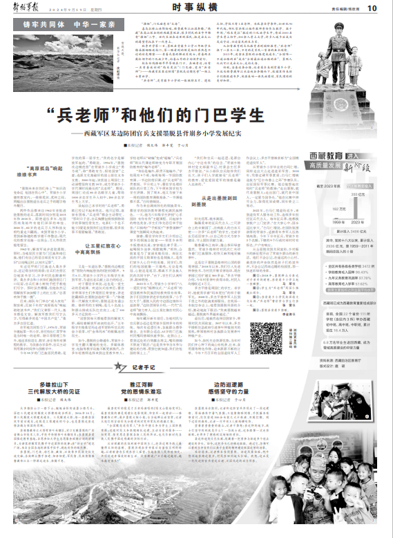 2023年3月,背崩乡小学举行“八一爱民学校”揭牌仪式。“‘兵老师’的爱国教育和民族团结教育很有效果,孩子们回到家讲述学校的故事,‘小手拉大手’,墨脱人民的守边固边情怀日益浓厚。”边防团领导介绍,一代代“兵老师”接力育人,让五星红旗在村民心中高高飘扬。