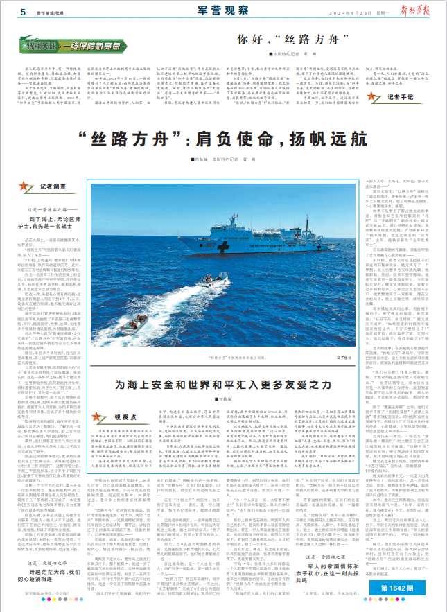 16年后,2024年7月10日,一则新闻吸引了人们的关注:南部战区海军新型远洋医院船“丝路方舟”号解缆起航,赴西南沙及华南沿海岛礁进行医疗巡诊。