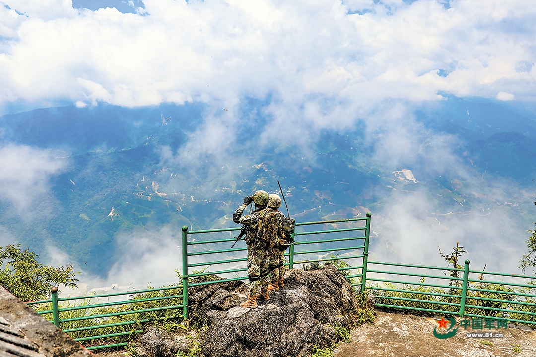 南国边境的密林深处,一会儿艳阳高照,一会儿暴雨如注。地面湿滑难行,一不小心就可能摔倒甚至滚落山谷。行进时,官兵无不小心翼翼。