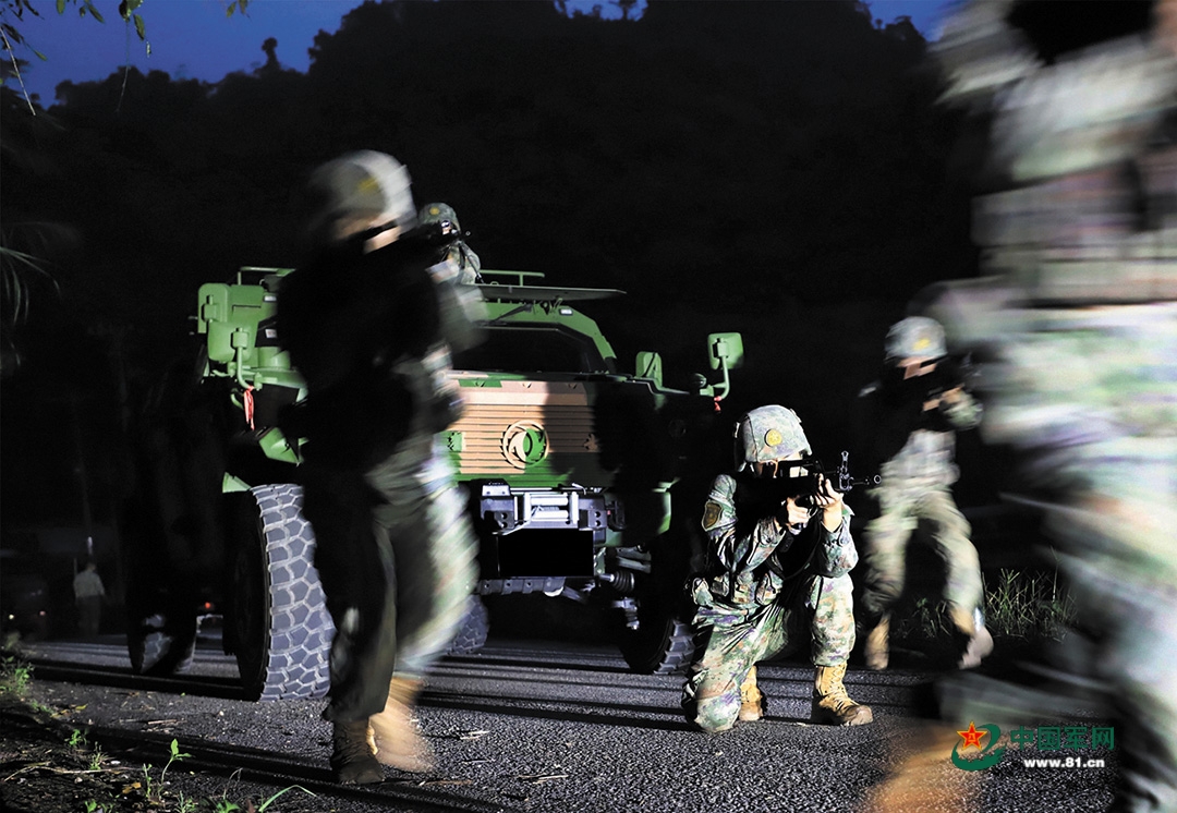 返回途中,夜幕降临,官兵突然接到上级“敌情”通报:“前方800米处,有‘不法分子’正欲越界……”一场边境应急处突训练随即展开。前出观察、搜索监控、迂回包抄……官兵按预定方案分组行动,很快将“越境人员”悉数抓捕。