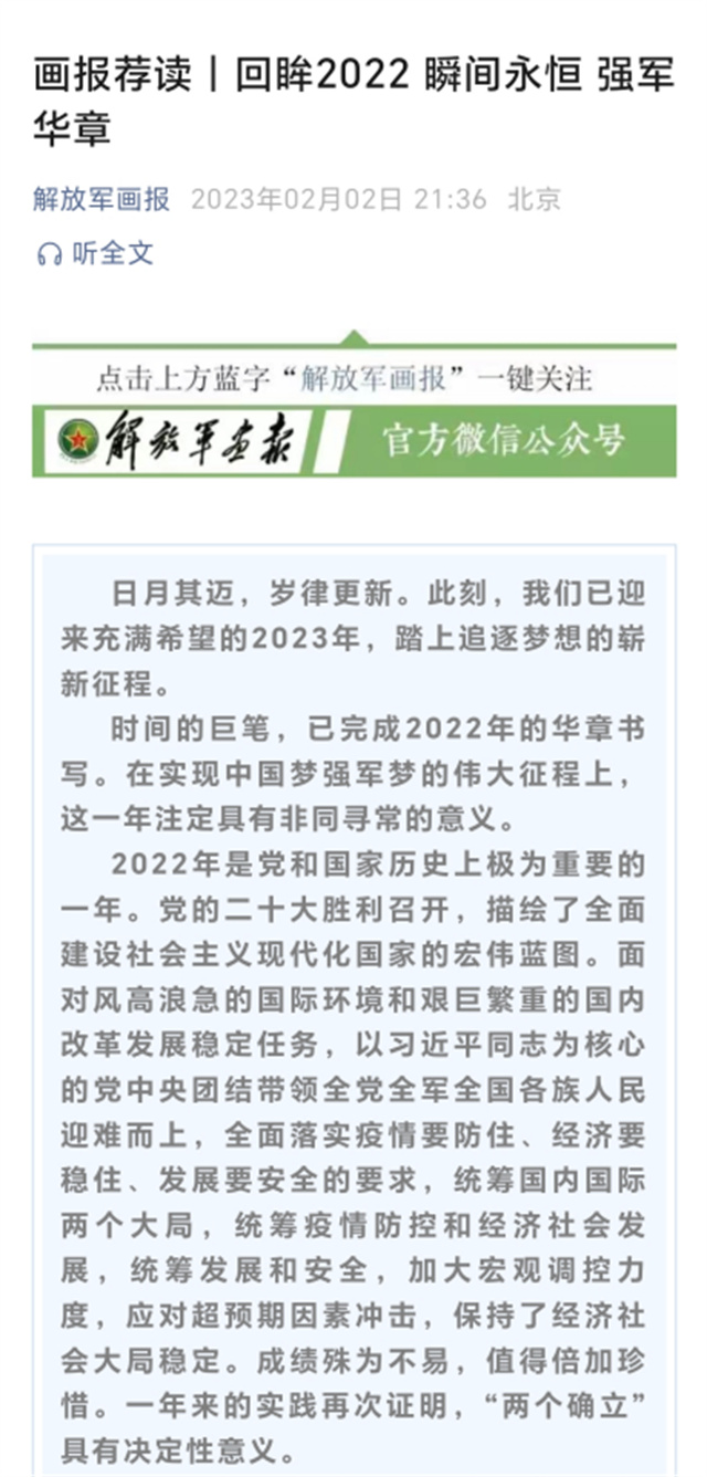 (“解放军画报”官方微信公众号2023年2月2日推送)