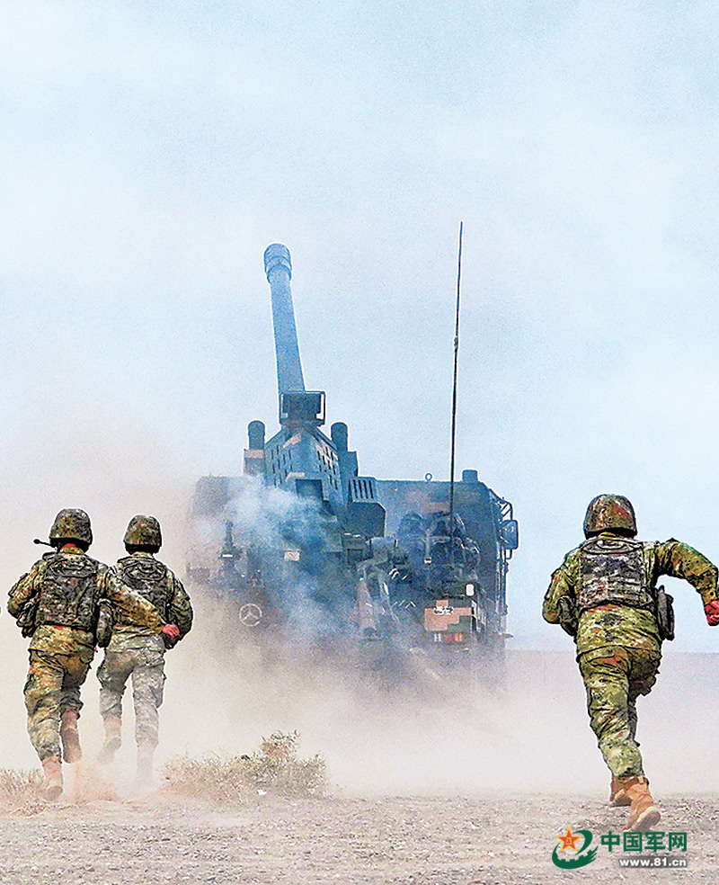 “发现‘敌’装甲车辆。”前方侦察组传来“敌情”。指挥员快速研判态势后,果断定下战斗决心。“预备,放!”一声令下,炮弹呼啸出膛,训练地域霎时火光冲天、硝烟弥漫。