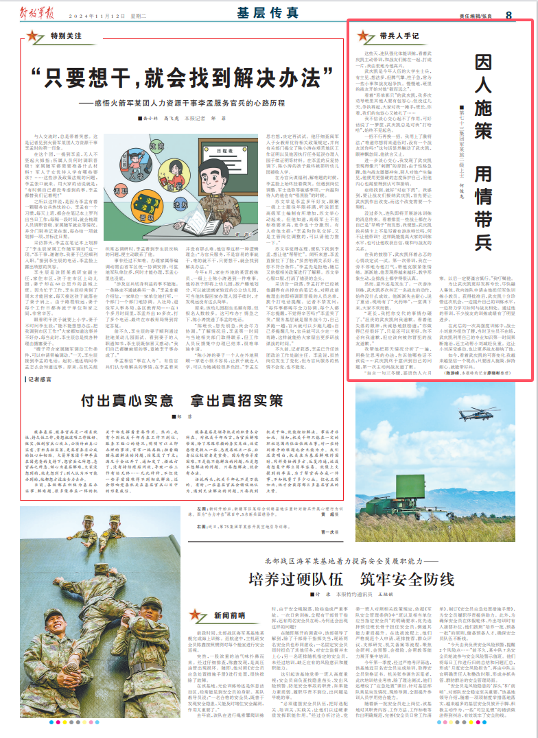 如今,看着武庆凯的可喜变化,我越来越坚信一个观点:只要因人施策、保持耐心,就能带好兵。