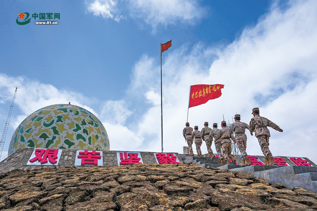 “甘巴拉英雄雷达站”官兵上阵地开展仪式教育。马 冰摄