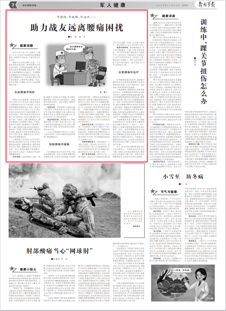 战友们在日常工作、训练中,可能由于久坐、久站及不良姿势等出现腰部酸胀、疼痛等不适症状,严重时还会反复发作。