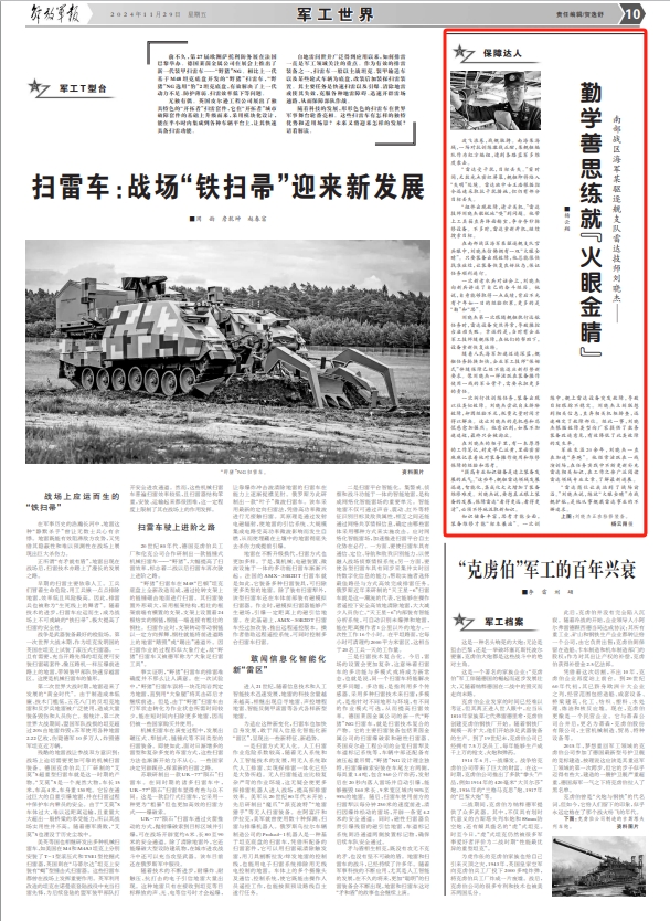 “雷达岗位让我站到了战场前沿。”刘晓杰说,练就“火眼金睛”为战舰护航,是他从事舰载雷达事业的不懈追求。