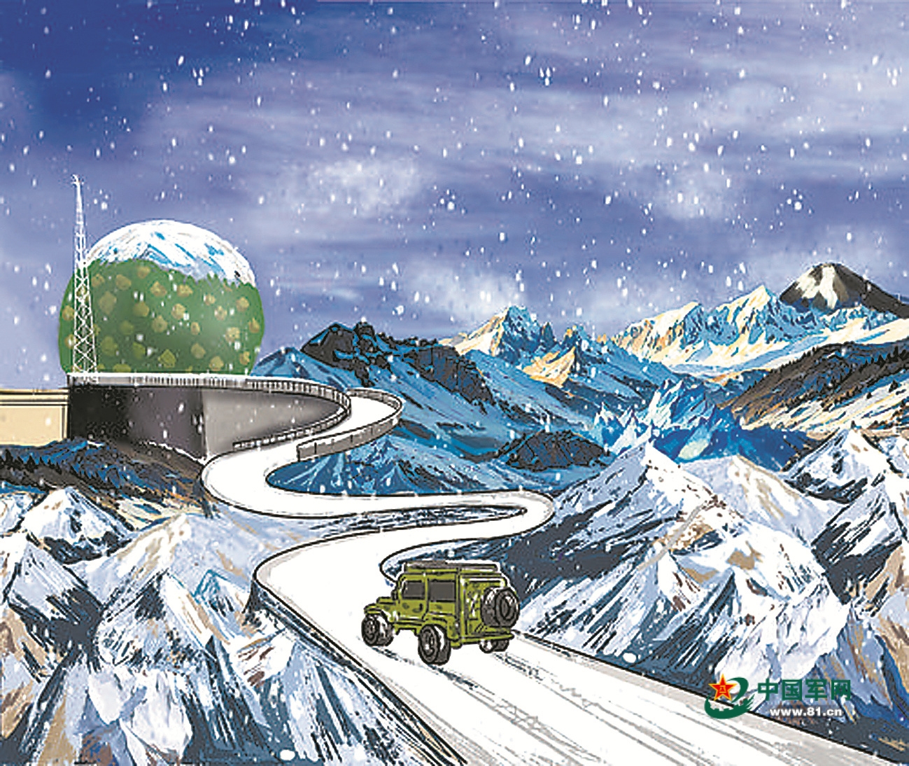 临近山顶,我远远望见一只巨大的被涂成迷彩绿的“雷达球”矗立天际。进入营区,穿过一条长长的走廊,一排平房映入眼帘,那便是战士们生活与学习的场所。
