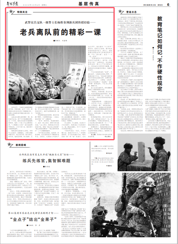 “再有一段时间,我就要离队了,还有一些心里话,想和大家交流交流。”走上讲台,杨胜奎以朴实的话语开场,围绕“难忘如山的恩情”“难忘惊险的瞬间”“难忘陪伴的夜灯”三个主题娓娓道来。