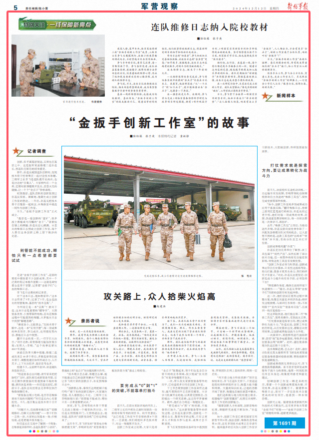 时任连长在交流中了解到一个现象:在维修复杂部件时,各连队都有“小诀窍”,普通战士的“金点子”往往能发挥大作用。