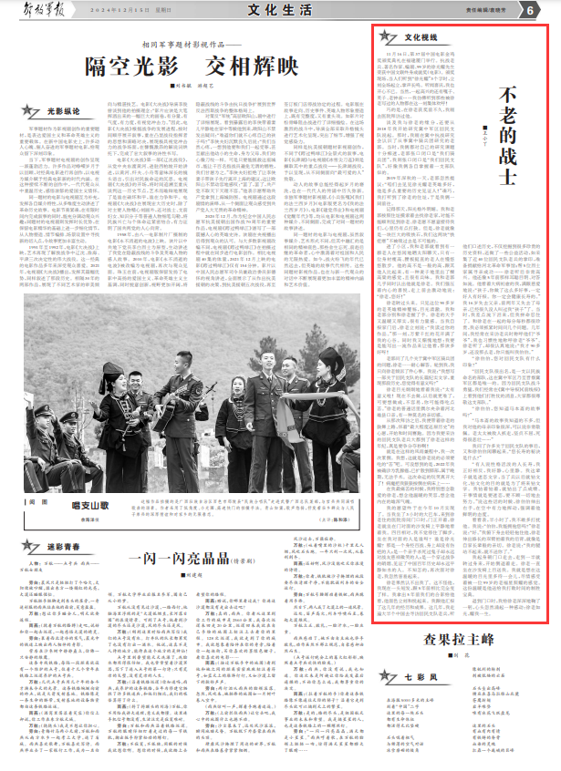 徐老转过头来。只见这位90多岁的老英雄精神矍铄,目光清澈。我和老郭分别和徐老握了手。徐老的大手又温暖又厚实,很有力量感。当我自报家门后,徐老立刻说:“我读过你的作品。”那一刻,万紫千红的花开满了我的心谷。同时我又惭愧地想:我要是能写出一流作品来让他看,那该多好呀!