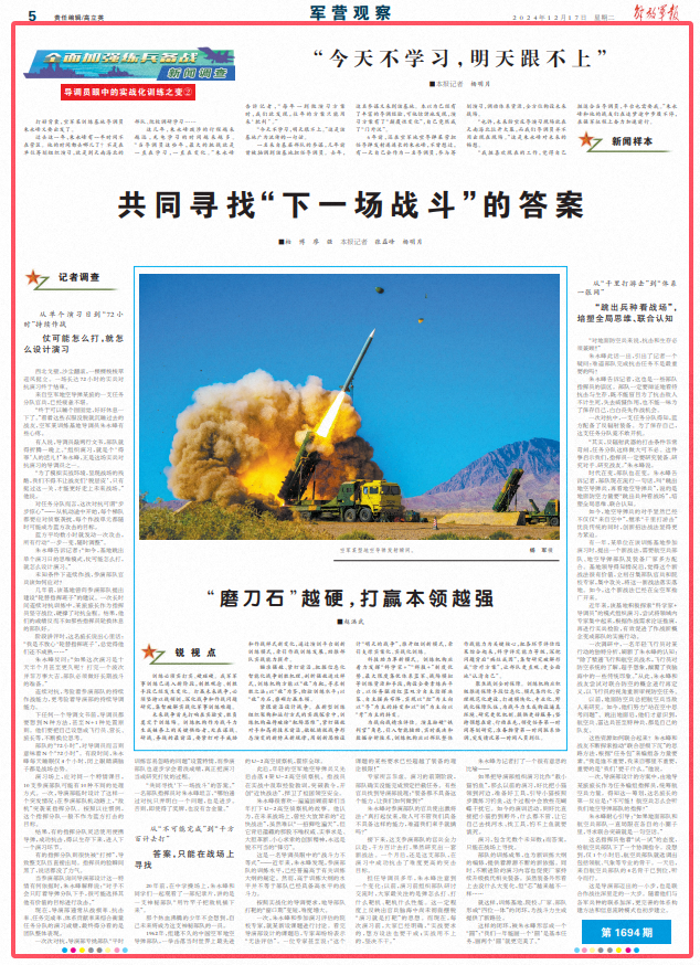 接下来,这支参演部队的官兵全力以赴,千方百计去打,果然研究出一套新战法。一个月后,还是这支部队,在演习中成功抗击了难度更高的突击目标。