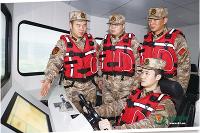 “当前为三级海况,船只摇晃加剧,海上能见度较差,请注意观察。”近日,在浙江省临海市民兵训练基地海上专业模拟训练室,市民兵应急连排长徐家昊指导民兵进行海上航渡抗眩晕训练,不时提醒参训人员注意事项。