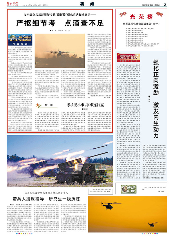 “从此次考核的细微之处,我和战友看到诸多可喜之变。”李涛说,他们接下来要做的,就是坚持用好考核这个“指挥棒”,引导官兵把规章制度每条要求刻进骨子里、融进脑海中,强化落实自觉性逐步形成“肌肉记忆”,就一定能在高强度的实战化训练中,实现战斗力建设水平的跃升。