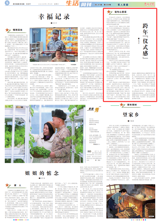自2014年入伍成为一名光荣的海军战士后,几乎每年元旦前,我和家人都会进行独特的跨年仪式。那些带着牵挂和思念的跨年仪式,成为激励我在部队成长进步的重要力量。