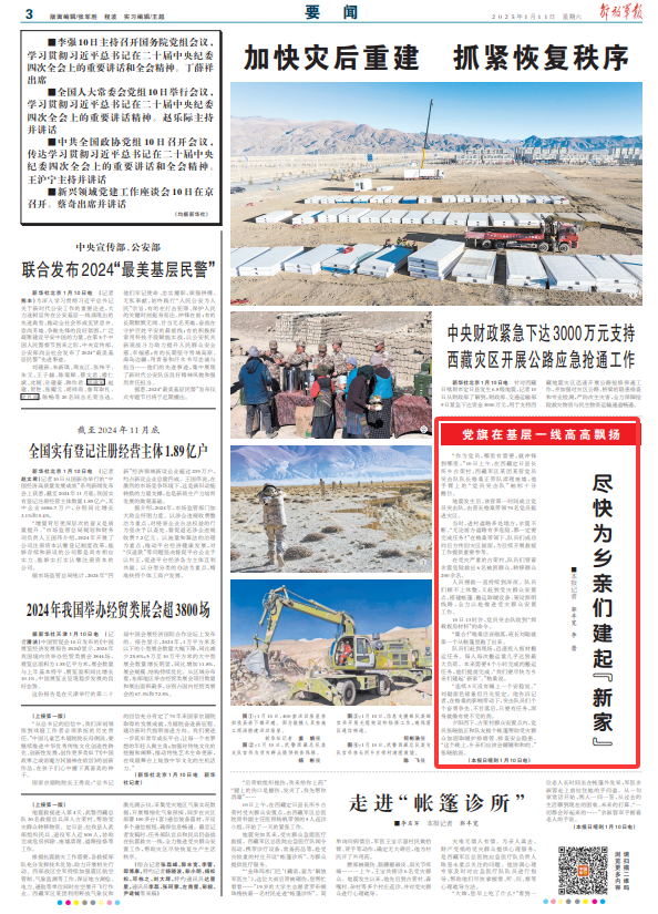 夕阳西下,古荣村群众安置点内,党员张晓航正和队友挨个帐篷帮助受灾群众加固取暖炉排烟管、排查安全隐患。“这个晚上,乡亲们应该会暖暖和和的。”张晓航说。