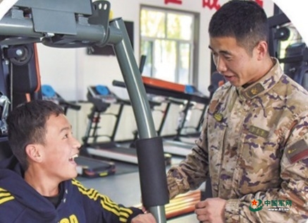 包建维邀请马文杰到武警临夏支队营区感受军营生活,体验训练器械。张明轩 摄