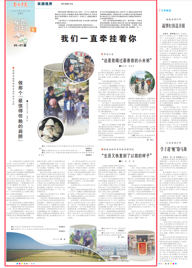 腊月的东北,虽天寒地冻,却也因为离过年越来越近,逐渐多了喜庆的气氛。第78集团军某旅食堂里,官兵捧着小米粥,手是暖的,心也是暖的。