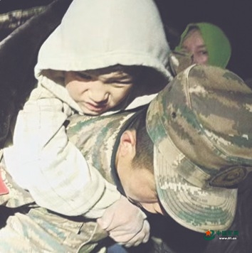 那个寒冷的夜晚,从废墟中被救出的男孩披着军大衣,稳稳地趴在他的背上……包建维没想到,那天同行战友拍下了这一幕,成为网络关注的热点。