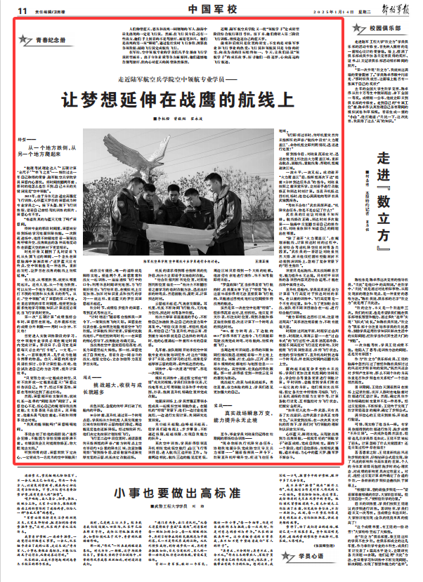 前座和后座只是位置的转变,不变的是对强军事业和飞行事业的热爱;飞行员和领航员只是身份的转变,向战为战的目标始终如一。今天,让我们品读“领航学子”的成长故事,探寻他们一路逐梦、心向高远的飞行航迹。
