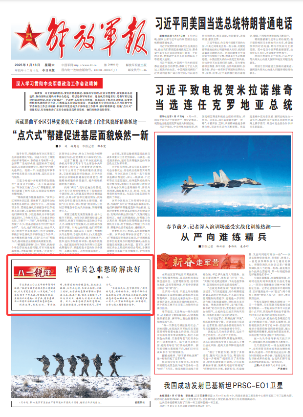 习主席在二〇二五年新年贺词中强调:“把老百姓身边的大事小情解决好,让大家笑容更多、心里更暖。”对于军队领导干部来说,贯彻落实好这一重要指示就是要心系官兵、情系基层,用心用情用力解决好官兵急难愁盼。