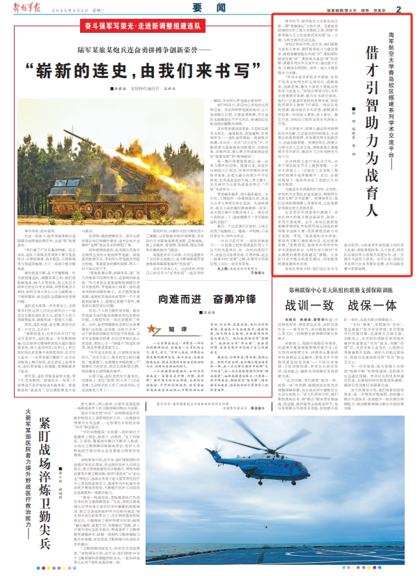 该校区领导介绍,近年来,他们着眼为战育人使命,紧盯新质战斗力建设需求,按照前瞻智能化作战“学”、紧贴部队转型发展“研”、聚焦练兵备战“谋”的思路,搭建系列学术交流平台,通过借才引智,为锻造名师团队、培养一流人才提供强有力支撑。