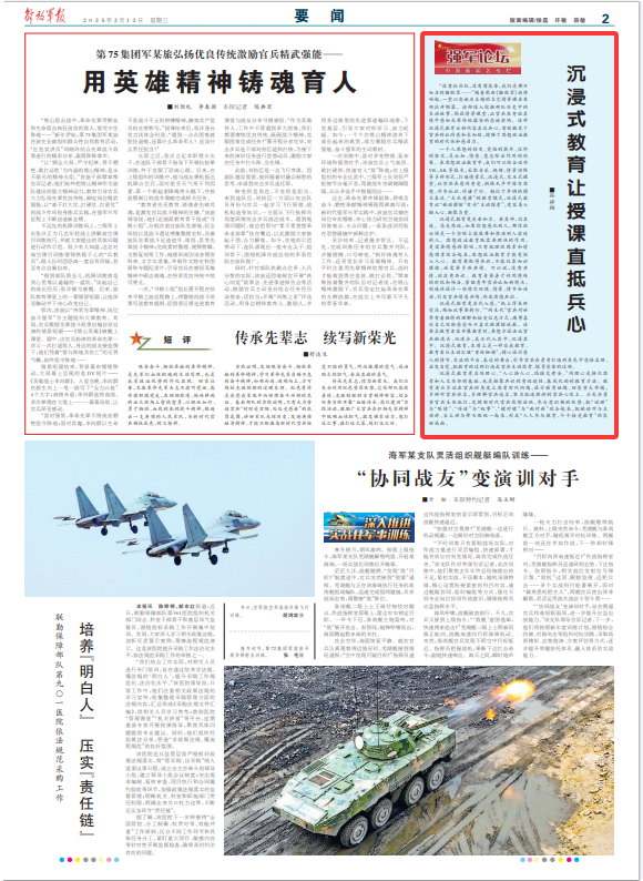 沉浸式教育更具同理心。“人心换人心,玛瑙兑黄金。”同理心是换位思考和人文关怀的基础,也是凝聚共识的有效途径、春风化雨的教育方法。教育者应多站在官兵的角度上思考时代问题、设计教育话题、回答重大命题,多倾听官兵诉求,多理解官兵追求,努力把道理讲到官兵心坎上。应充分尊重官兵主体地位,发挥新时代官兵思维活跃、参与意识强的优势,把“说理”与“陈情”、“传道”与“叙事”、“键对键”与“面对面”结合起来,把被动听与主动讲、台上讲与带头做统一起来,形成“人人参与教育、个个接受教育”的良好局面。